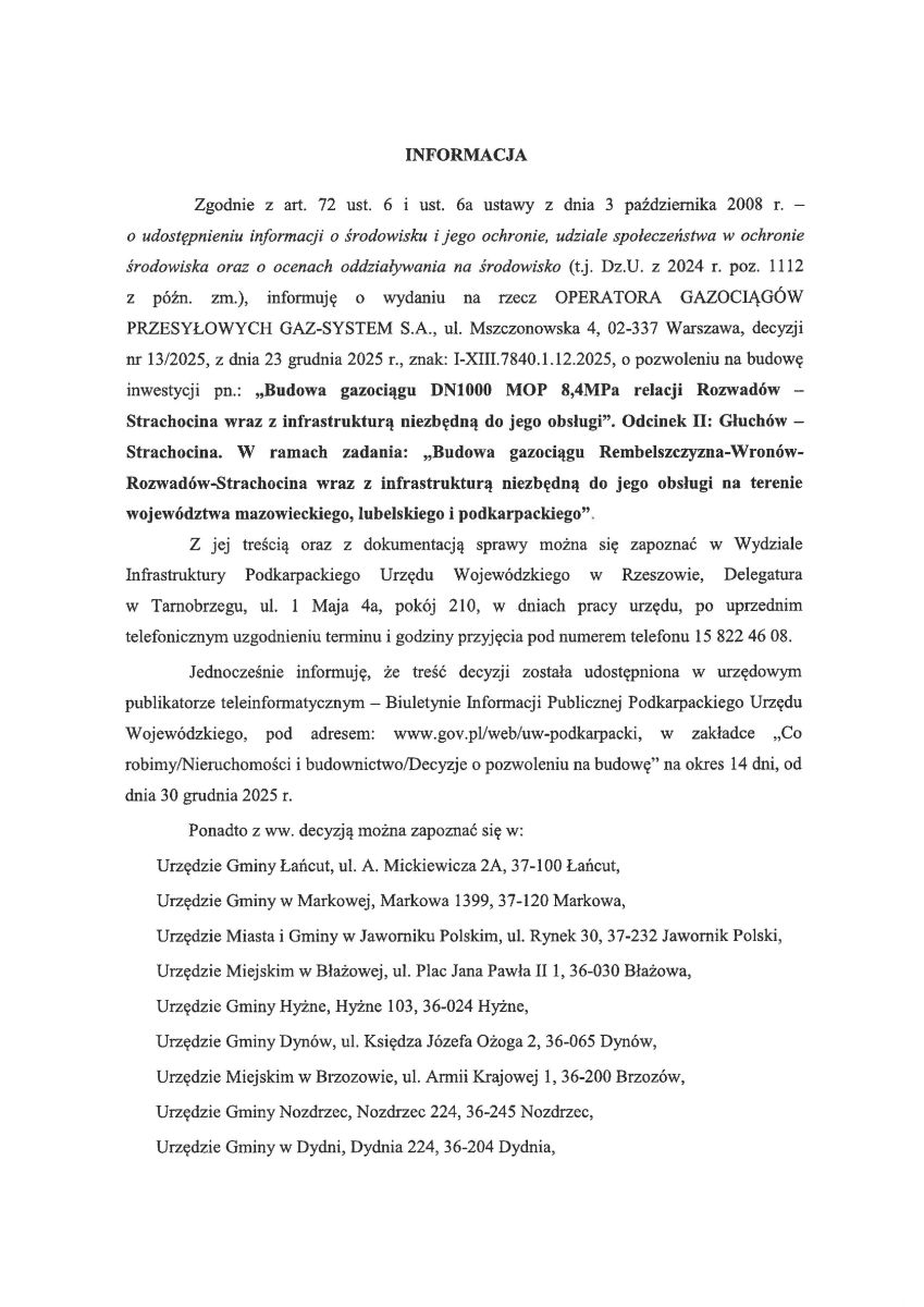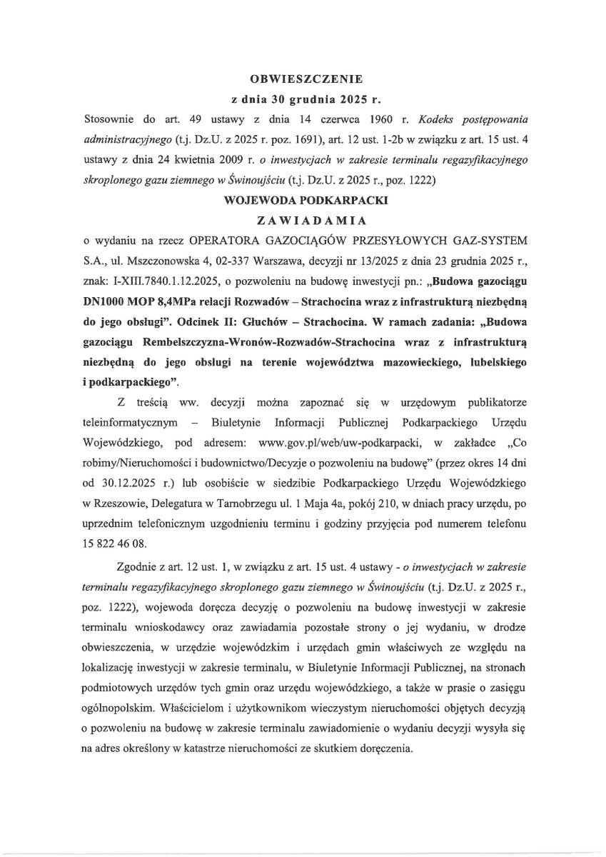 Obwieszczenie Wojewody Podkarpackiego