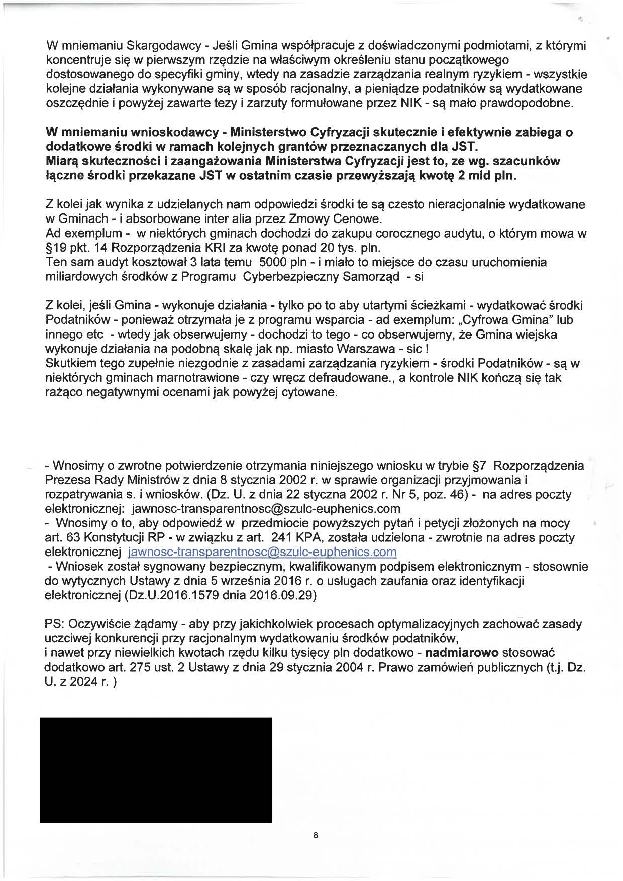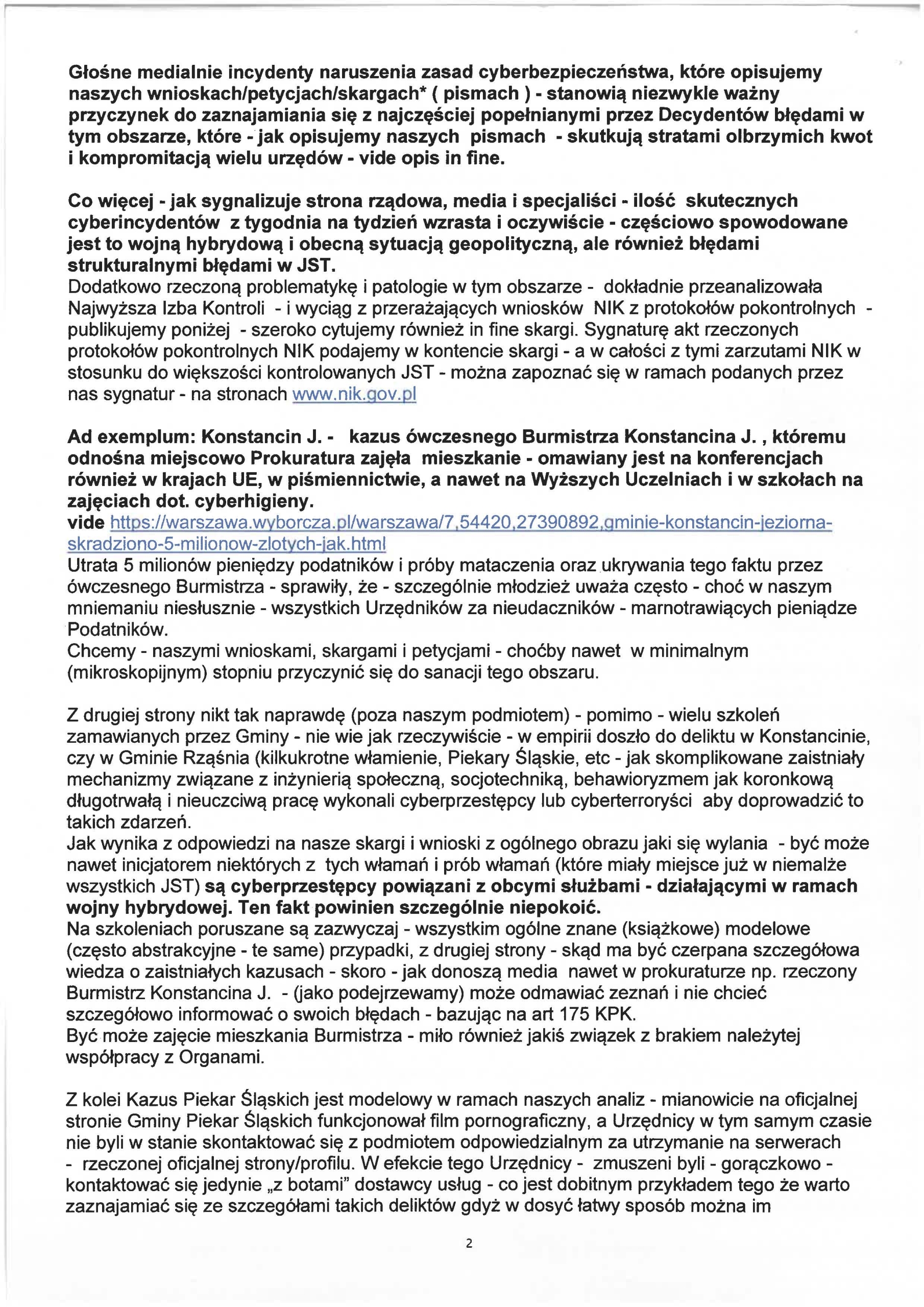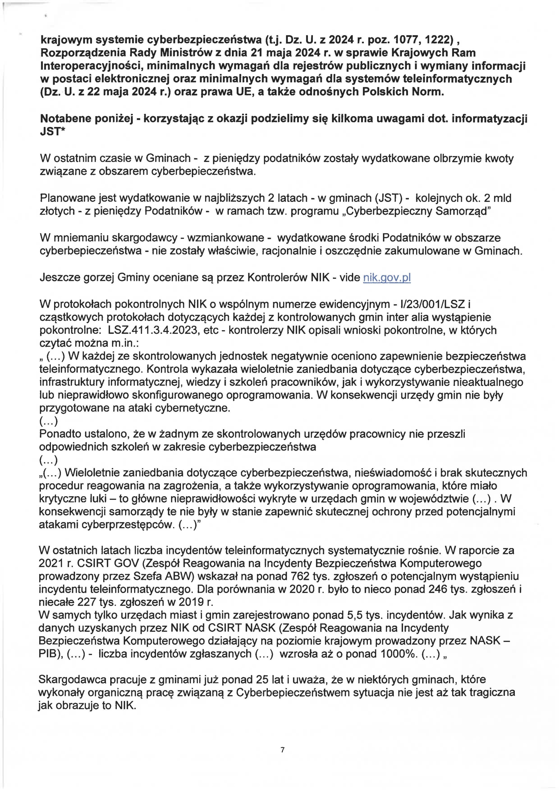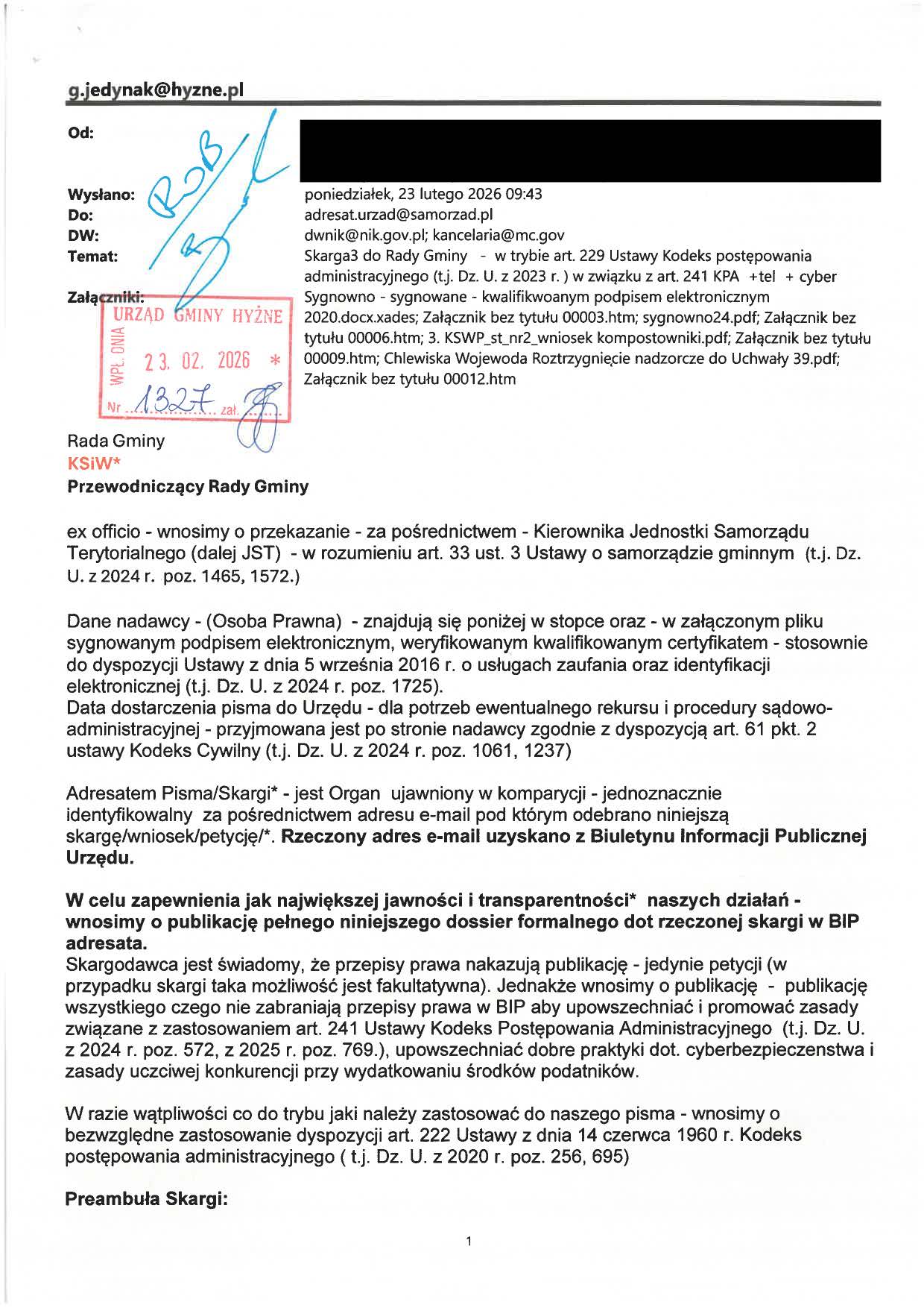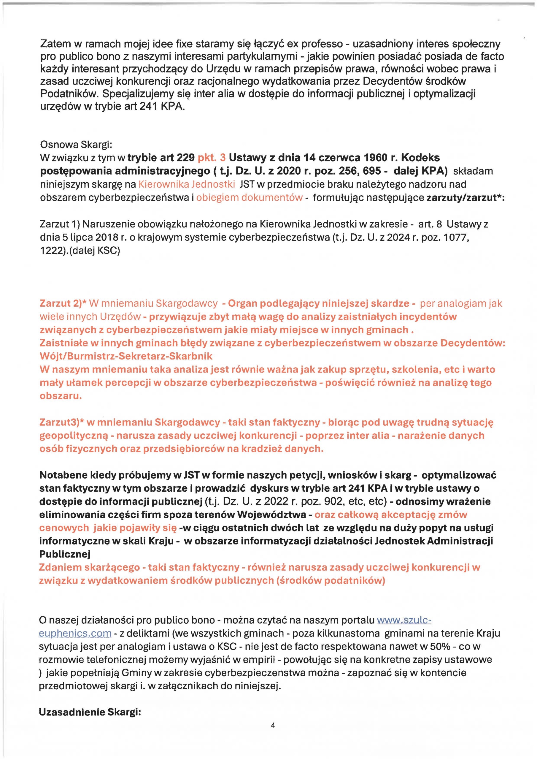 Skarga na Kierownika Jednostki JST w przedmiocie braku należytego nadzoru nad obszarem cyberbezpieczeństwa i obiegiem dokumentów