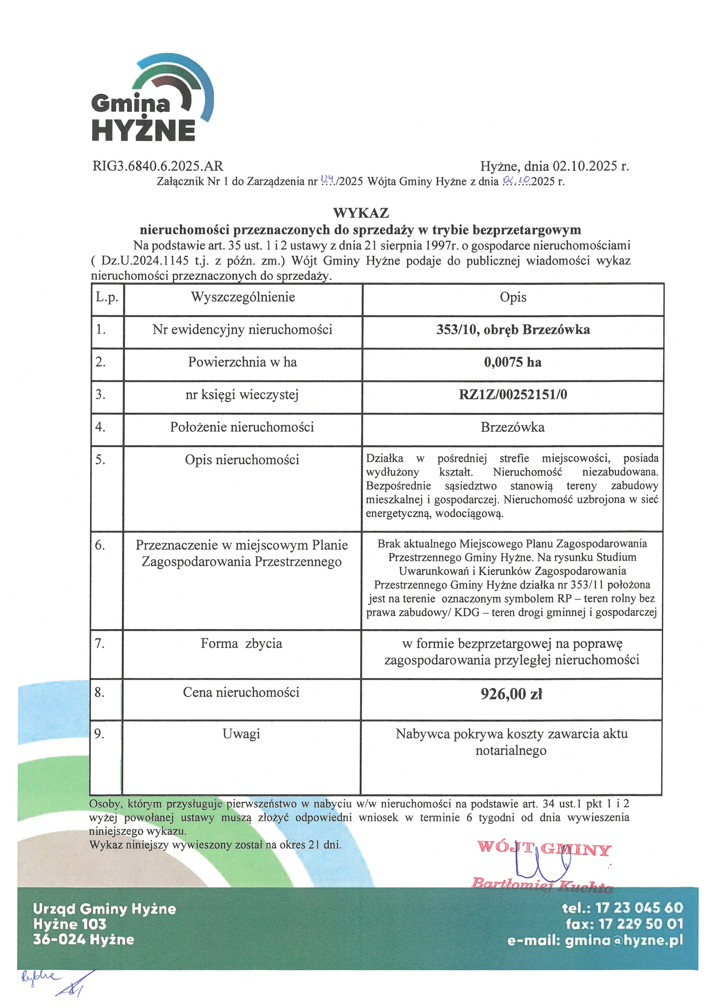 Wytworzył: Aneta Rybka, Data wytworzenia: 2025-10-03, Podmiot udostępniający: Urząd Gminy Hyżne
