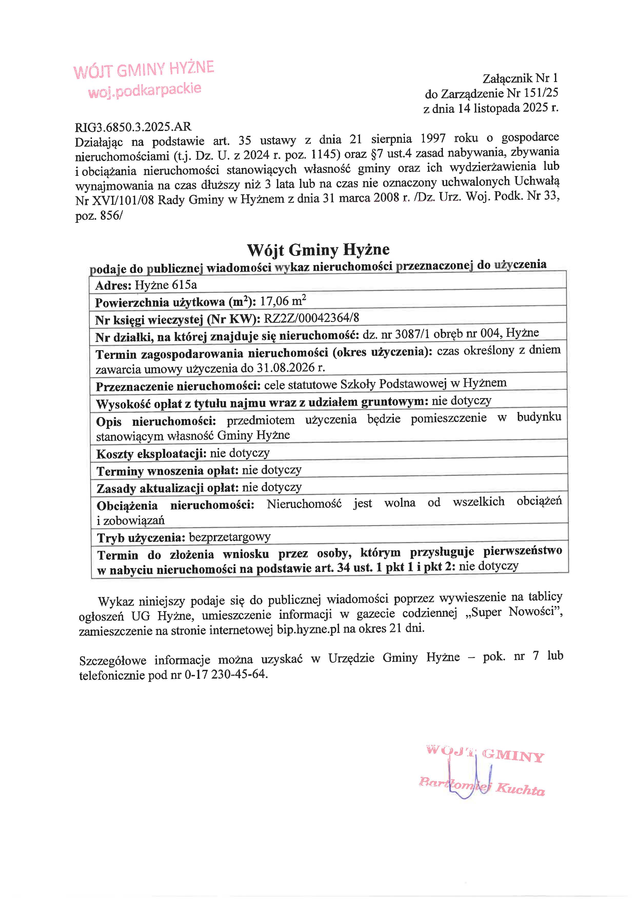 Wytworzył: Aneta Rybka, Data wytworzenia: 2025-11-21, Podmiot udostępniający: Urząd Gminy Hyżne