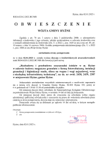 Obwieszczenie – „Rozbudowa i przebudowa oczyszczalni ścieków w m. Hyżne w zakresie budowy magazynu granulatu z farmą fotowoltaiczną, instalacji granulacji i higienizacji osadu, silosu na wapno i wagi najazdowej”