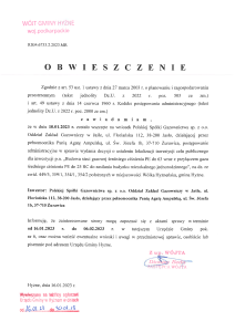 OBWIESZCZENIE – „Budowa sieci gazowej średniego ciśnienia PE dn 63 wraz z przyłączem gazu średniego ciśnienia PE dn 25 RC do zasilania budynku mieszkalnego jednorodzinnego”