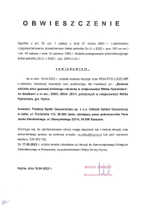 Obwieszczenie – Budowa odcinka sieci gazowej średniego ciśnienia w miejscowości Wólka Hyżneńska