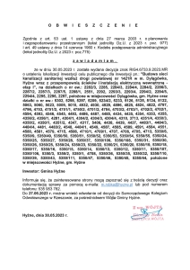 Obwieszczenie – „Budowa sieci kanalizacji sanitarnej wzdłuż drogi powiatowej nr 1421R w m. Dylągówka, Hyżne wraz z przepompownią ścieków i instalacją elektryczną wewnętrzną – etap I”