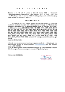 Obwieszczenie – „Budowa sieci kanalizacji sanitarnej w m. Brzezówka – wzdłuż drogi na Borówki, gm. Hyżne”