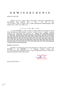 Obwieszczenie – „Budowa sieci kanalizacji sanitarnej w m. Brzezówka-wzdłuż drogi na Borówki, gm. Hyżne”