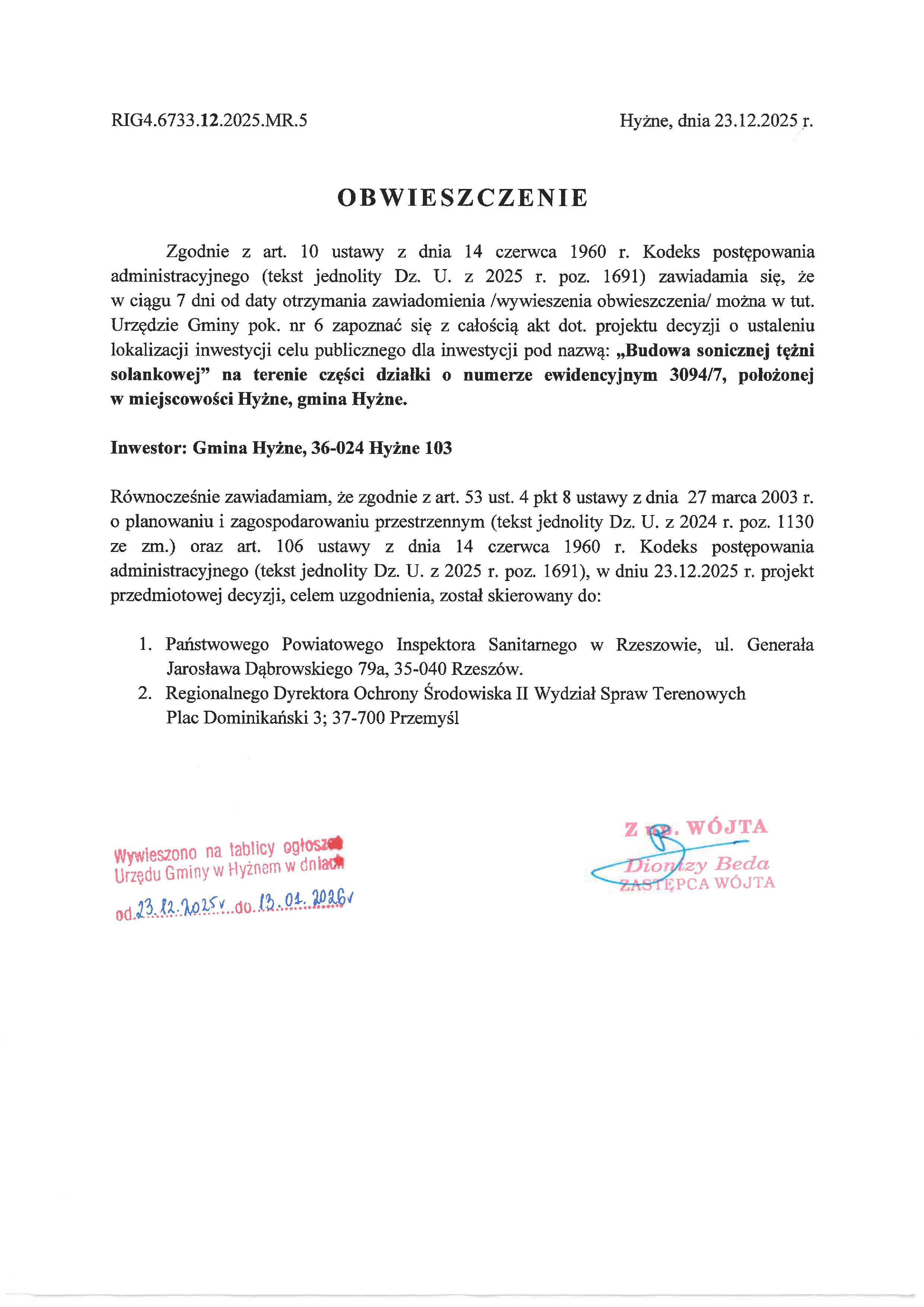 Wytworzył: Wioletta Kruła, Data wytworzenia: 2025-12-23, Podmiot udostępniający: Urząd Gminy Hyżne