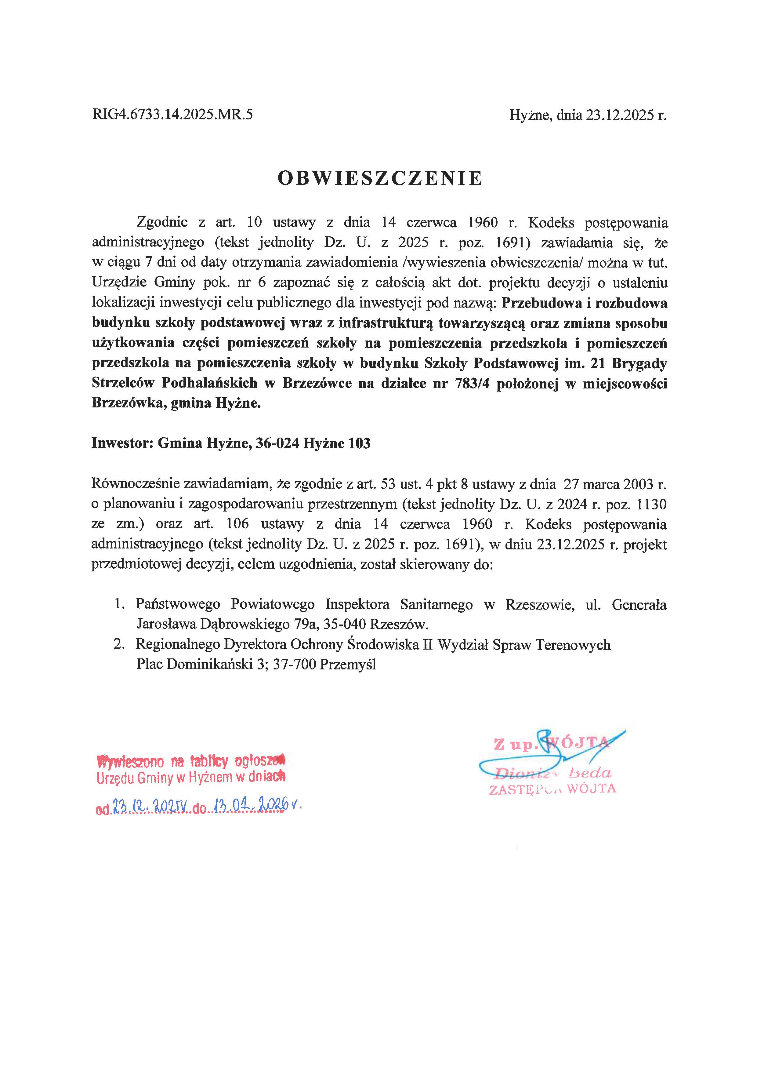 Wytworzył: Wioletta Kruła, Data wytworzenia: 2025-12-23, Podmiot udostępniający: Urząd Gminy Hyżne