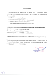 OGŁOSZENIE – UPROSZCZONA OFERTA REALIZACJI ZADANIA PUBLICZNEGO